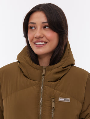 The Eloraina Chevron Puffer Parka by Bench is a must-have winter staple. With its puffy fit, long silhouette, and high collar, it provides exceptional warmth and insulation. Elasticized cuffs and a hood enhance comfort, while an interior pocket keeps essentials secure. Ideal for cold weather and snowstorms, it's perfect for your winter wardrobe.