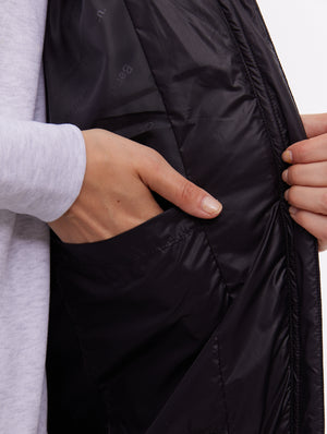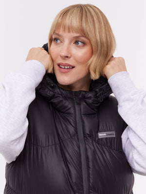 Designed for lightweight layering and everyday warmth, the Saz Longline Hooded Vest by Bench brings comfort and versatility to transitional weather. With its elongated silhouette and chevron quilted construction, this vest offers both style and function. The hood and full front zip provide added protection, while roomy pockets and sleek details make it an easy, on-the-go essential.